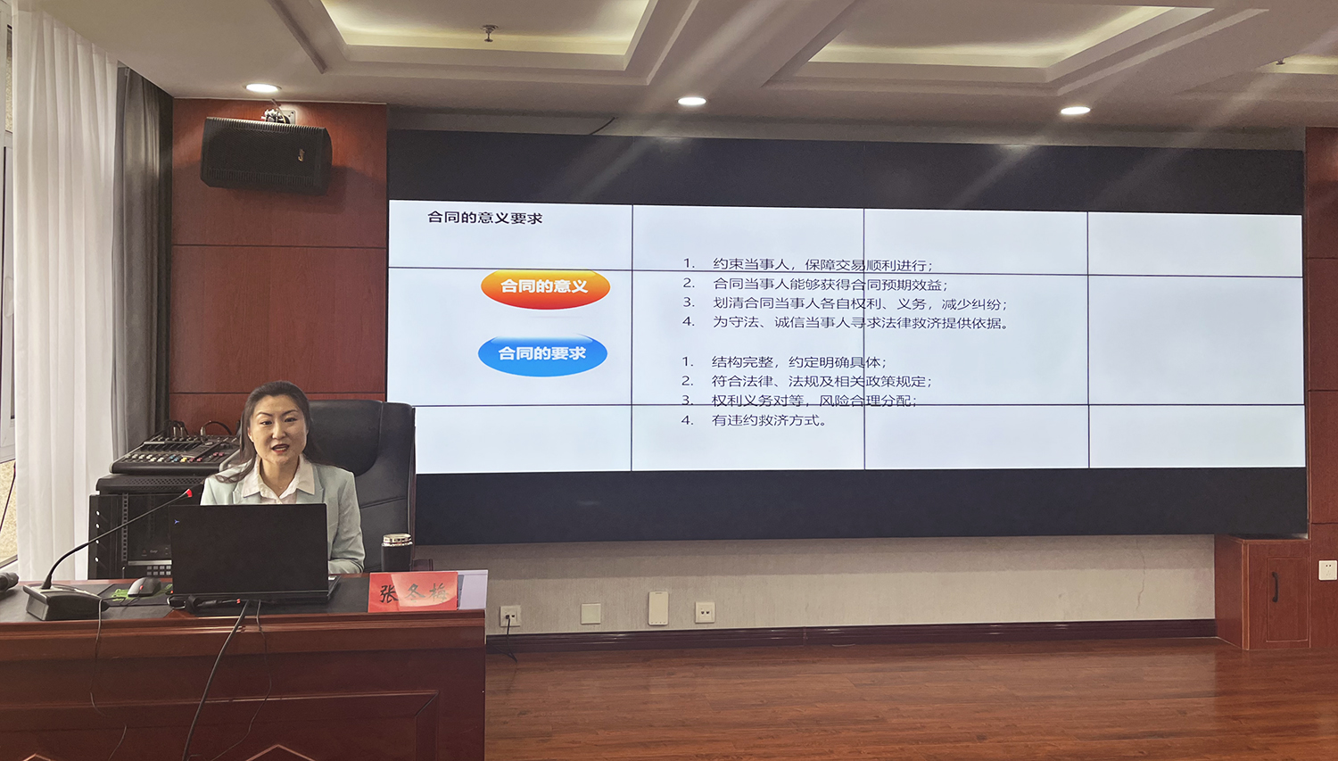 本次培訓會議特邀集團公司常年法律顧問、河北德律律師事務所張冬梅律師就《民法典》合同編部分做了專題講解,張冬梅律師圍繞合同的意義、合同的基本結(jié)構(gòu)、合同效力的規(guī)定、審查合同應注意的問題等內(nèi)容做了精彩的授課,并對相關(guān)問題進行了解答。