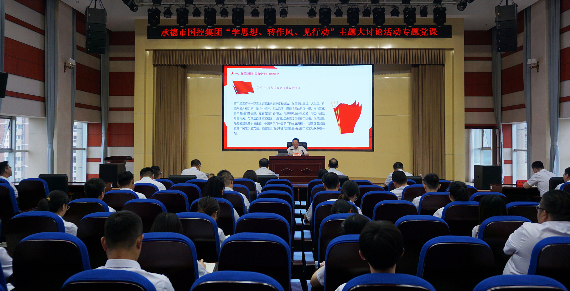 7月12日,為深入學(xué)習(xí)貫徹習(xí)近平總書記關(guān)于堅持不懈抓好作風(fēng)建設(shè)的重要論述,落實市委市政府關(guān)于在全市開展“學(xué)思想、轉(zhuǎn)作風(fēng)、見行動”主題大討論活動精神,國控集團召開“學(xué)思想、轉(zhuǎn)作風(fēng)、見行動”主題大討論活動專題黨課。